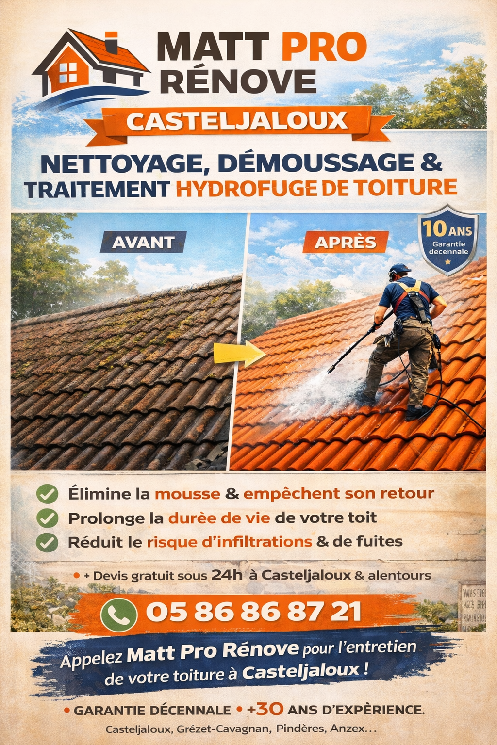 Nettoyage, démoussage & traitement hydrofuge de toiture à Casteljaloux Votre toit est noirci, envahi par la mousse ou vous craignez une infiltration ?[…]